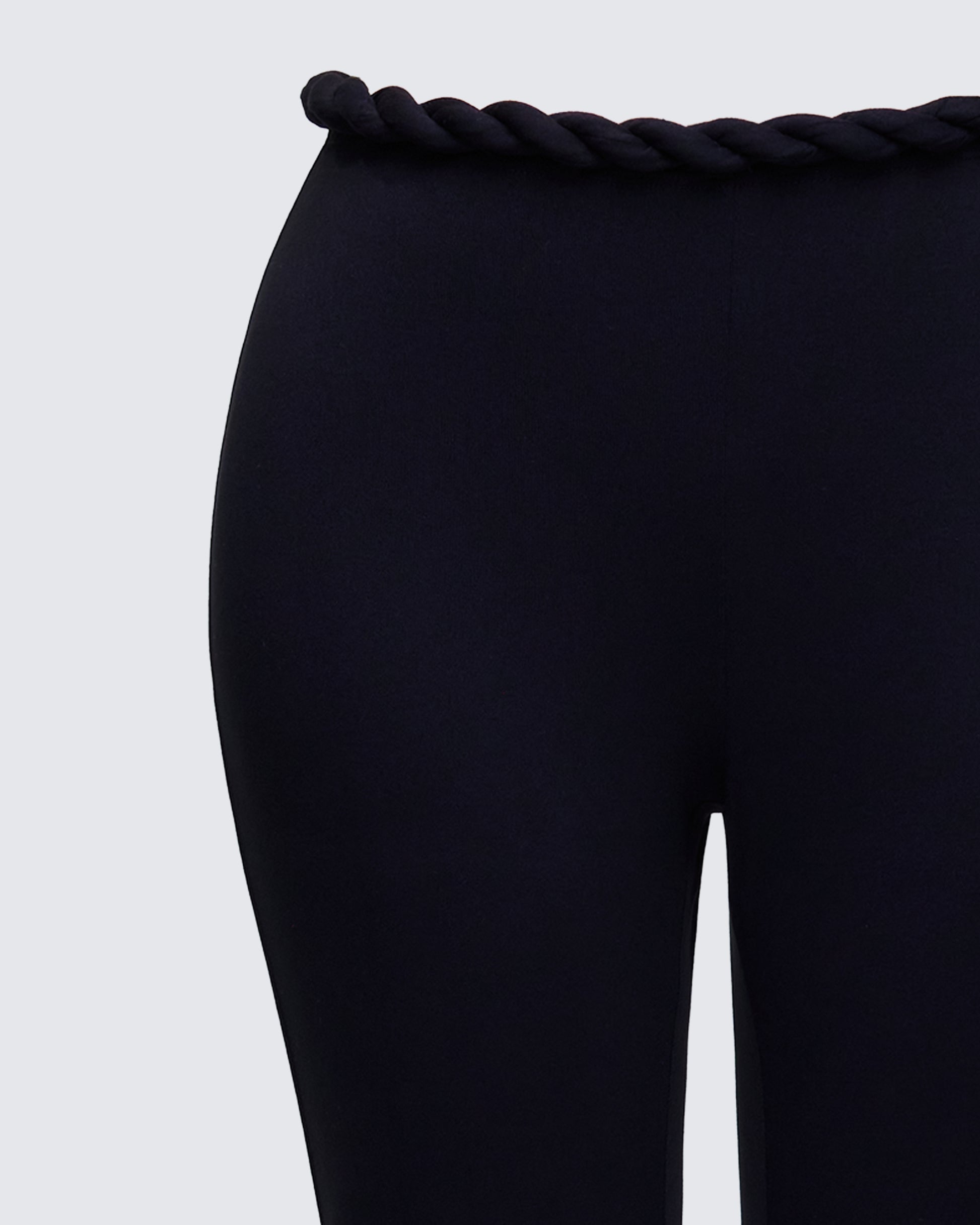 <p>Novia Black Vegan Leather Corset Top: 50% Polyurethane, 50% Polyester</p><p>Sailor Black Jersey Twist Waist Pant: 85% Polyamide, 15% spandex</p>