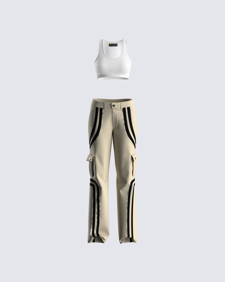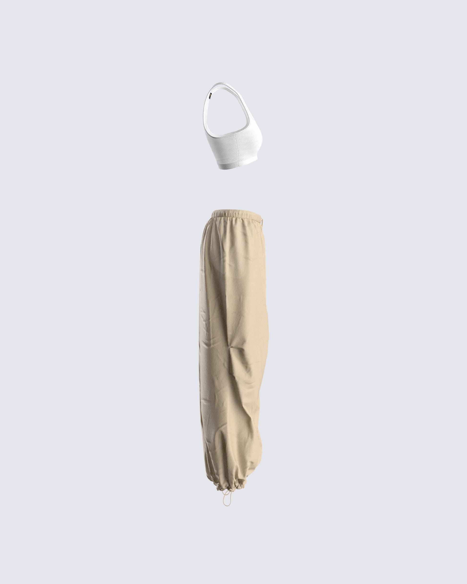 This 2 piece set is the ultimate vibe 👏 Comfy, sleek, and stylish - a white tank paired with parachute pants is the kind of look that gives off an effortless vibe that everyone will be trying to imitate 😌