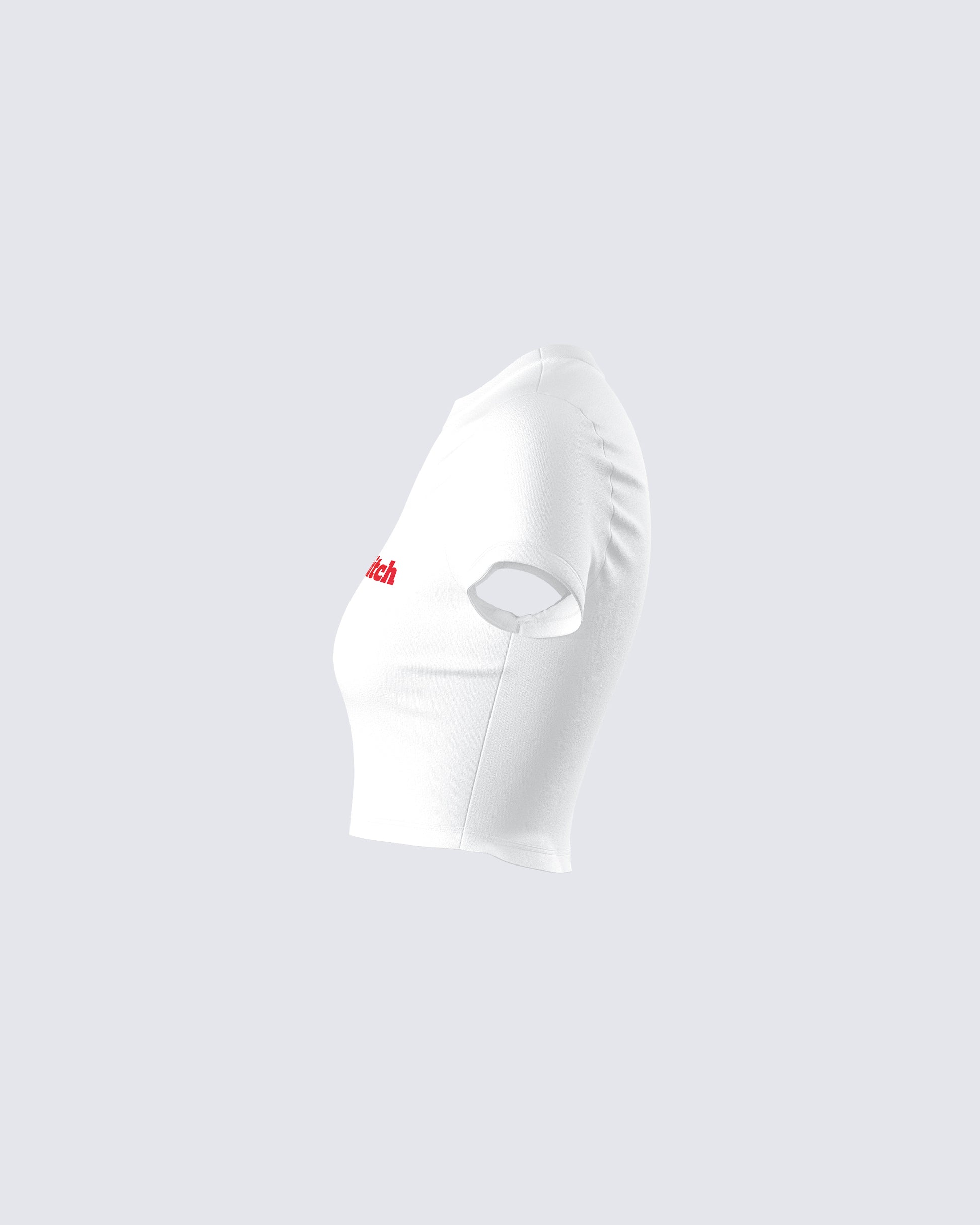 Where the baddies at 👀 This top made from jersey fabric and complete with a cropped fit and “ms. take yo b*tch” graphic is the top you wear when you want to give them a little warning 😜