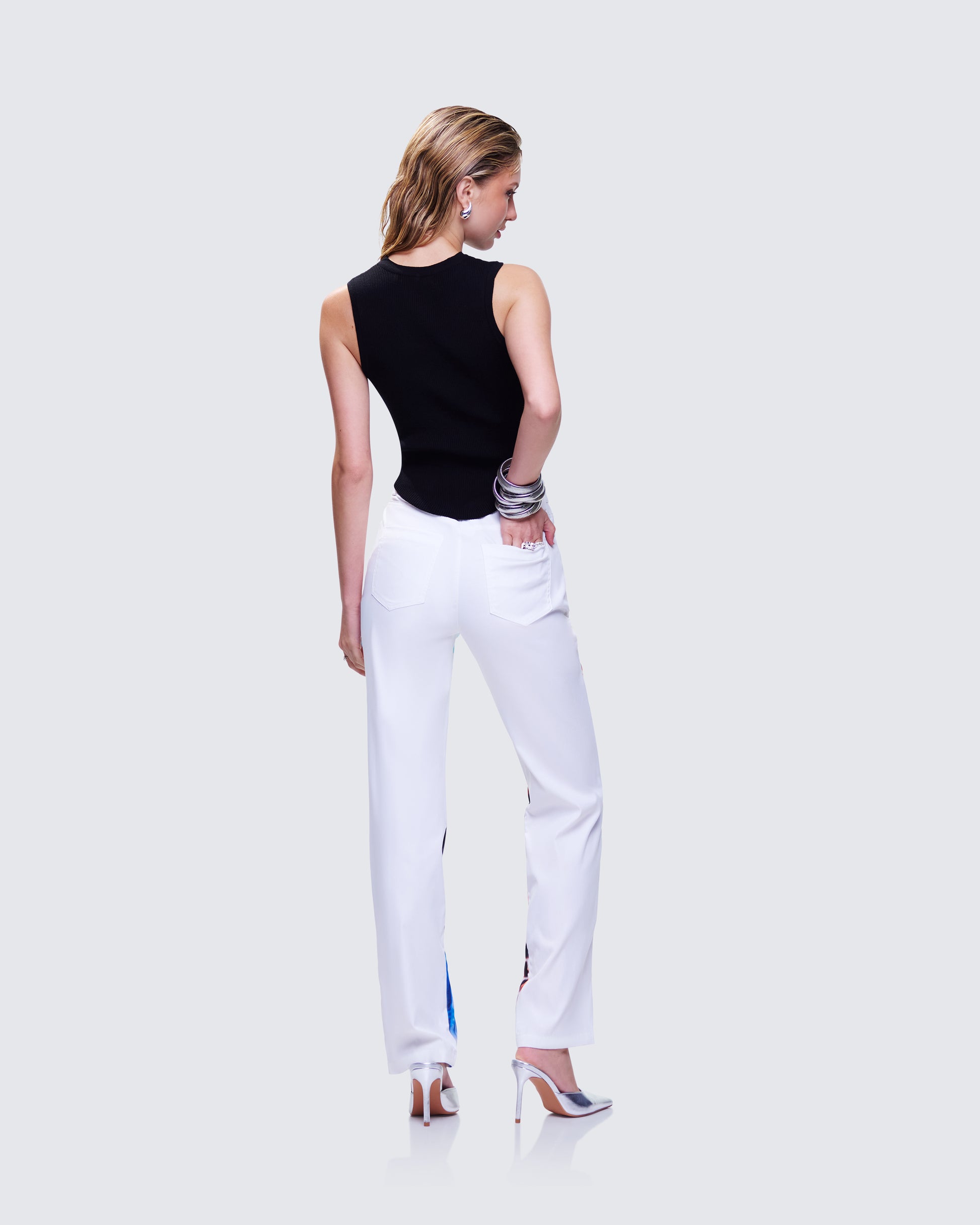 <p>Sonny Black Rib Tank Top: 53% Polyamide, 47% Viscose</p><p>Jadyn Multi Deity Print Twill Pant: 100% Polyester </p>