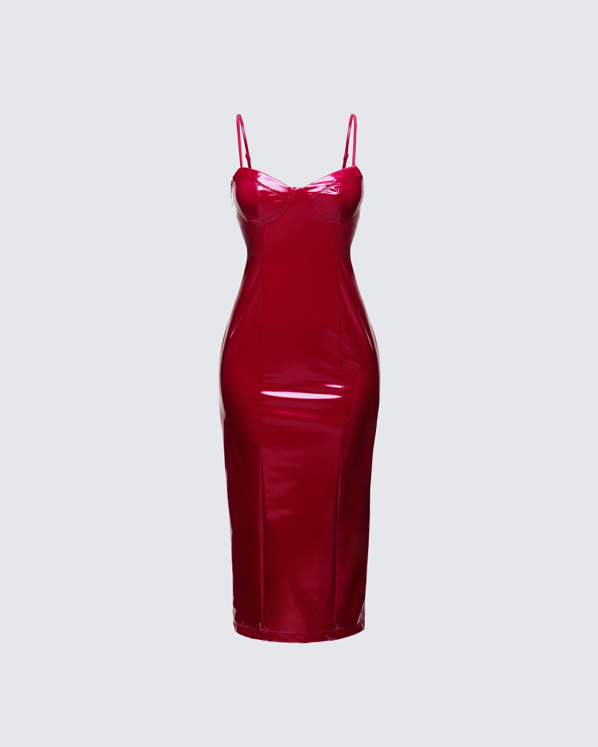 You won’t need to cook or clean to get a ring in this dress 😏 Made from patent polyurethane and complete with a midi-length and lined bust cups - this burgundy midi dress will have you lookin' and feelin' better than everyone ❤️
