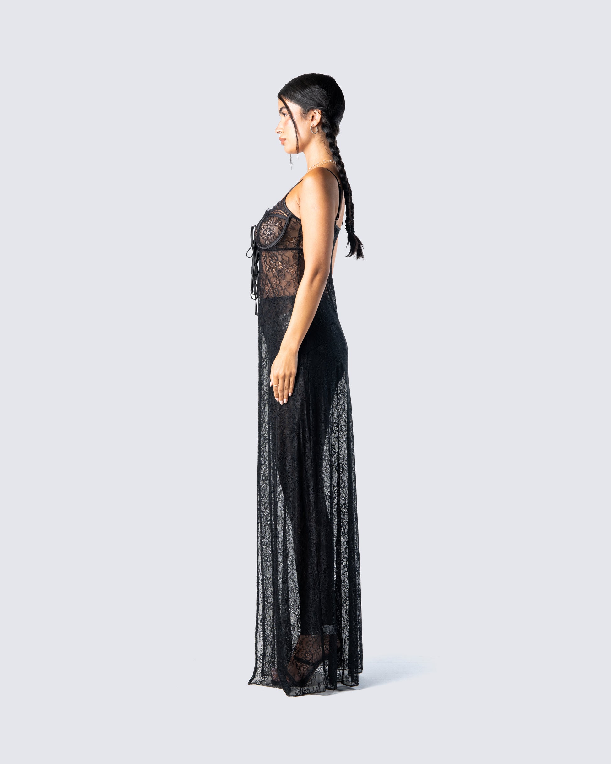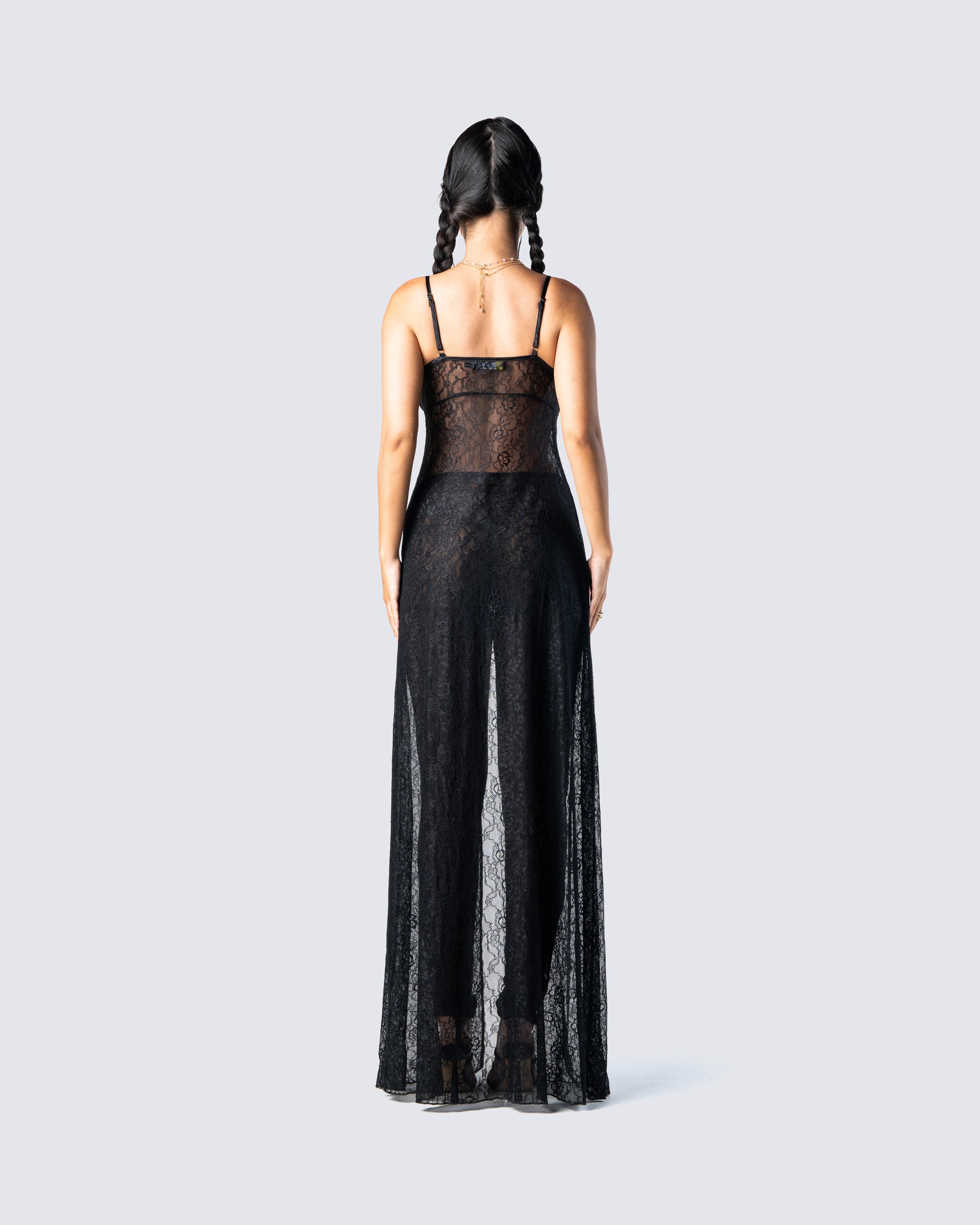 Having a dark side isn't a bad thing 🖤 Sneak up on them and dominate their life with this sickening two-piece set. Featuring a black lace maxi top, and legging pants - this look will have them all obeying your every rule 😈