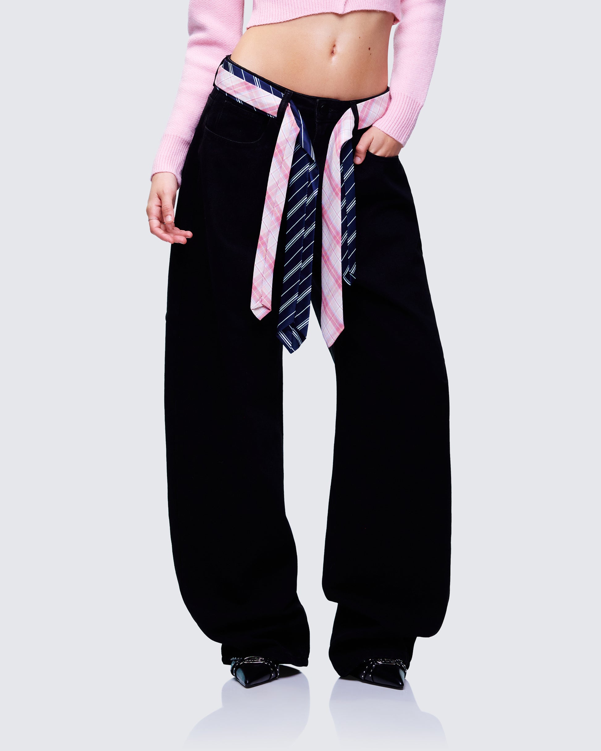 Pants that pull it together… literally 🤭 With a wide leg cut, and functional ties in belt loops - these are jeans that style themselves 💓