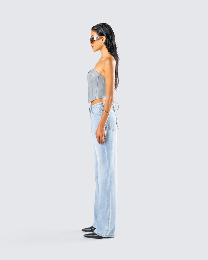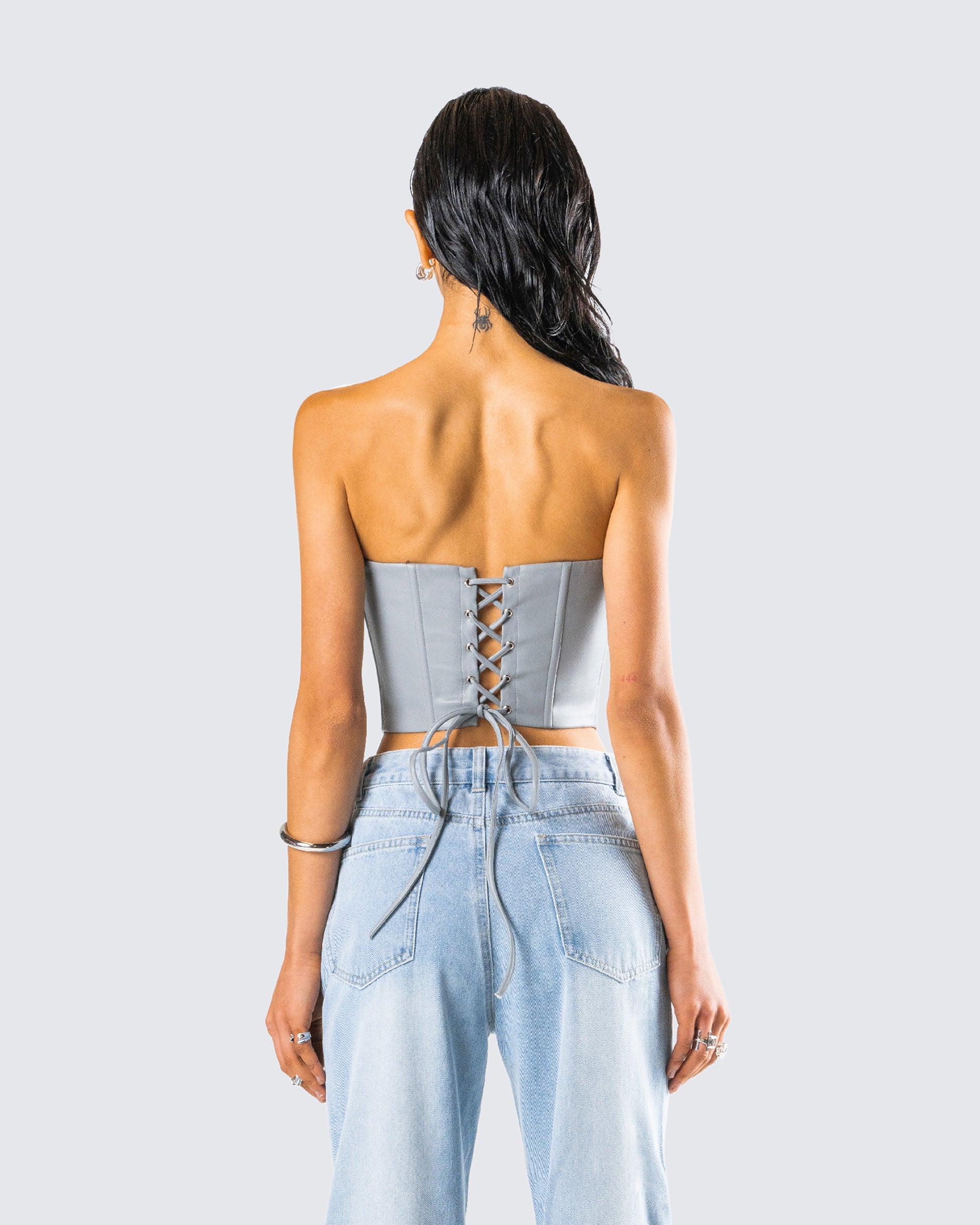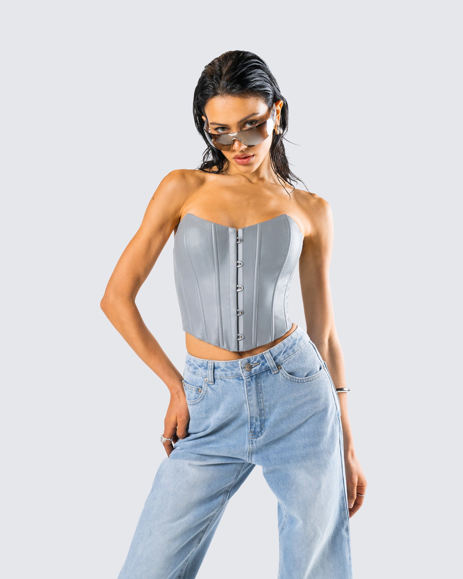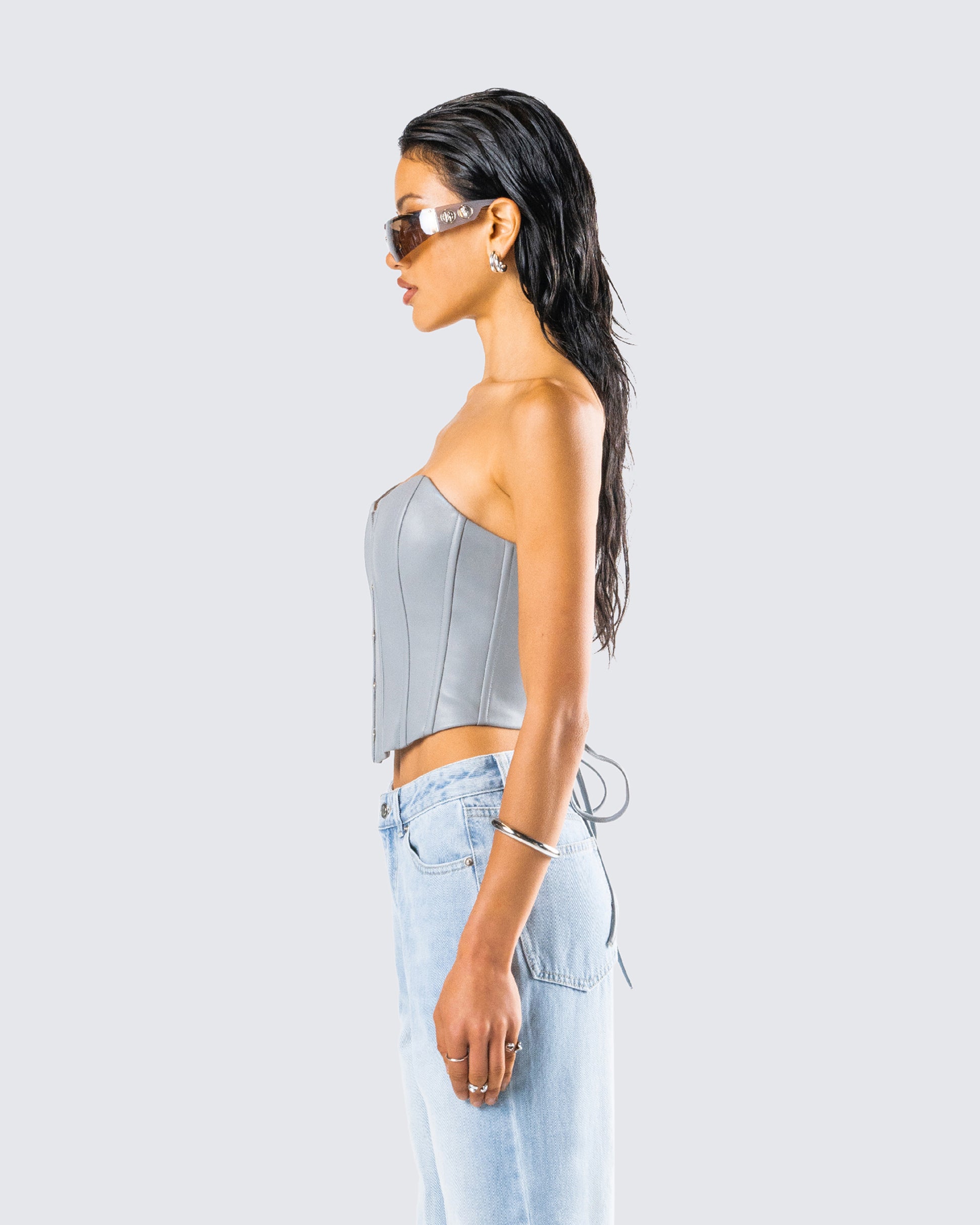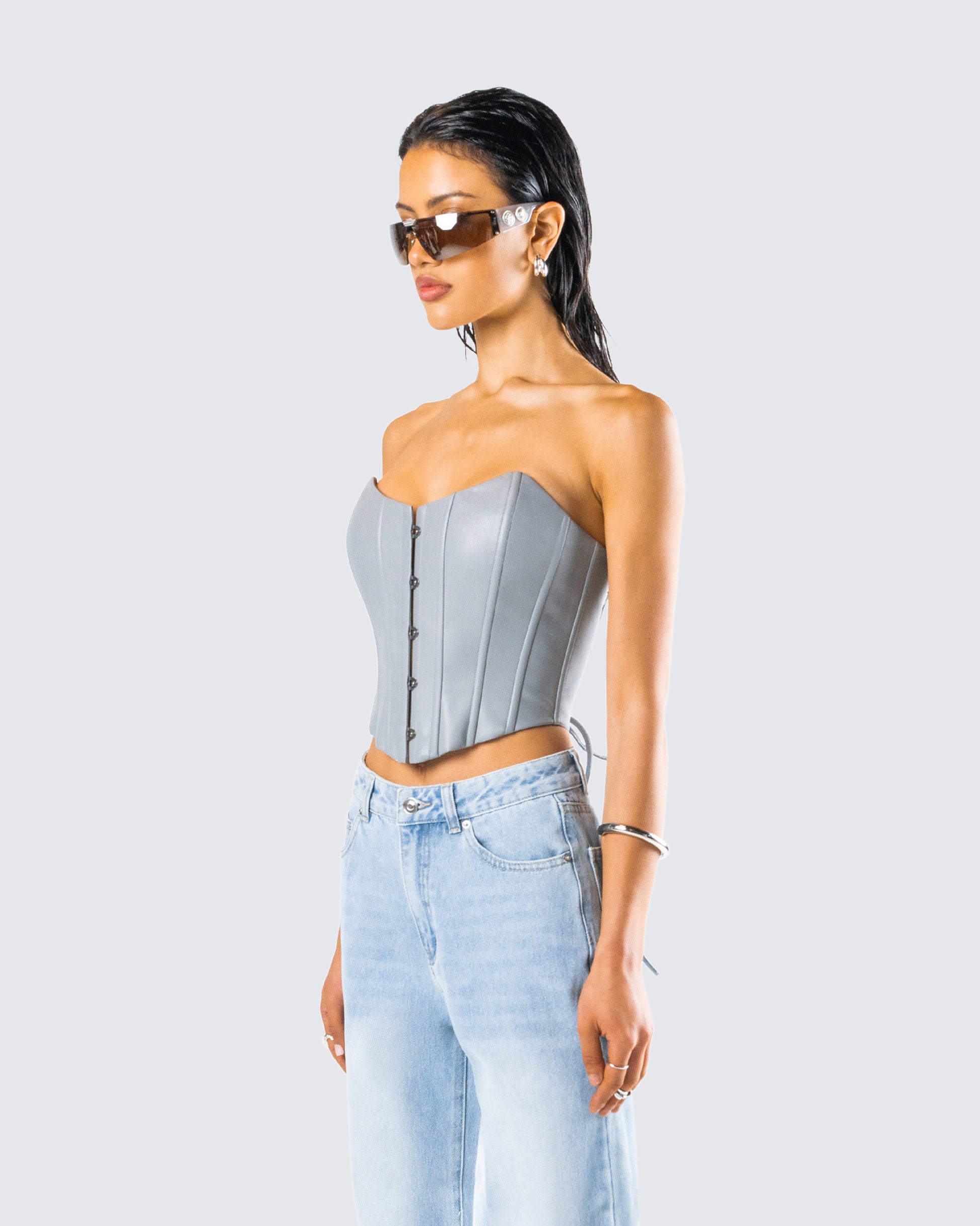 Tui Grey Vegan Leather Corset Top