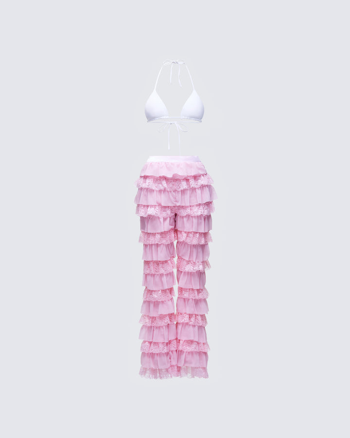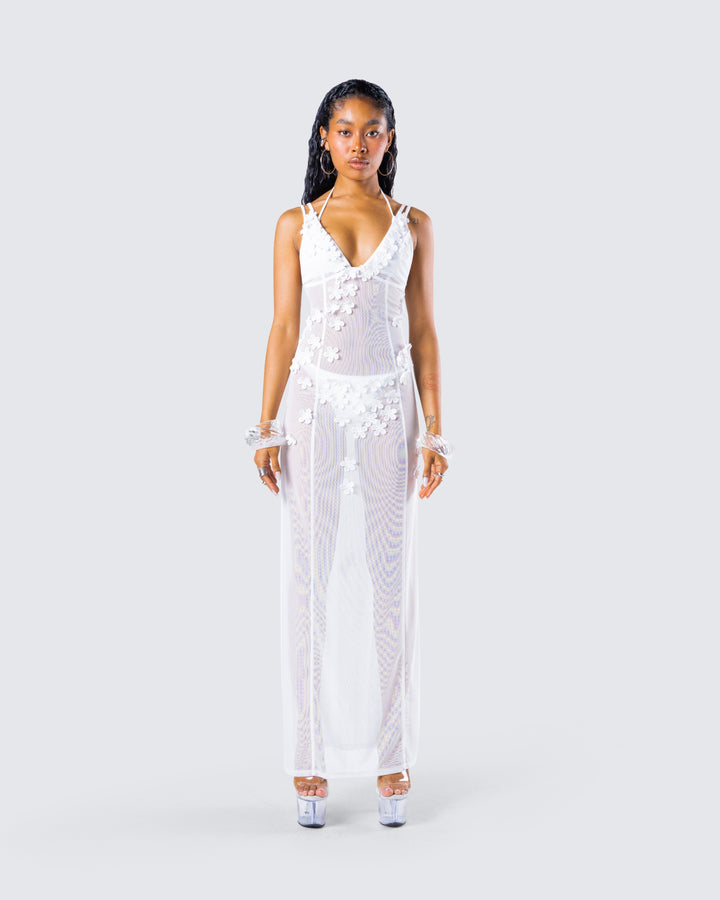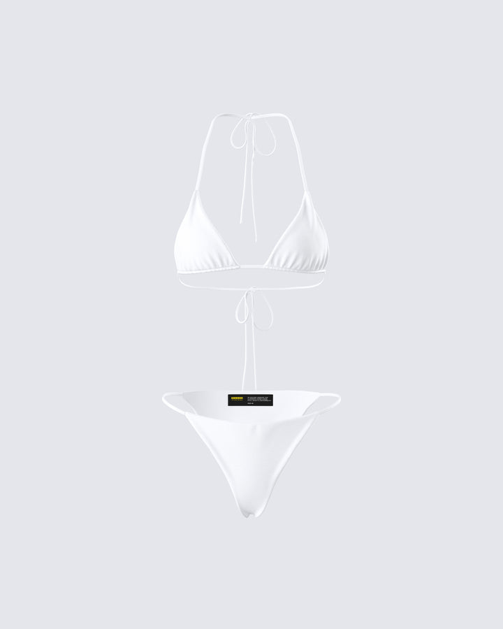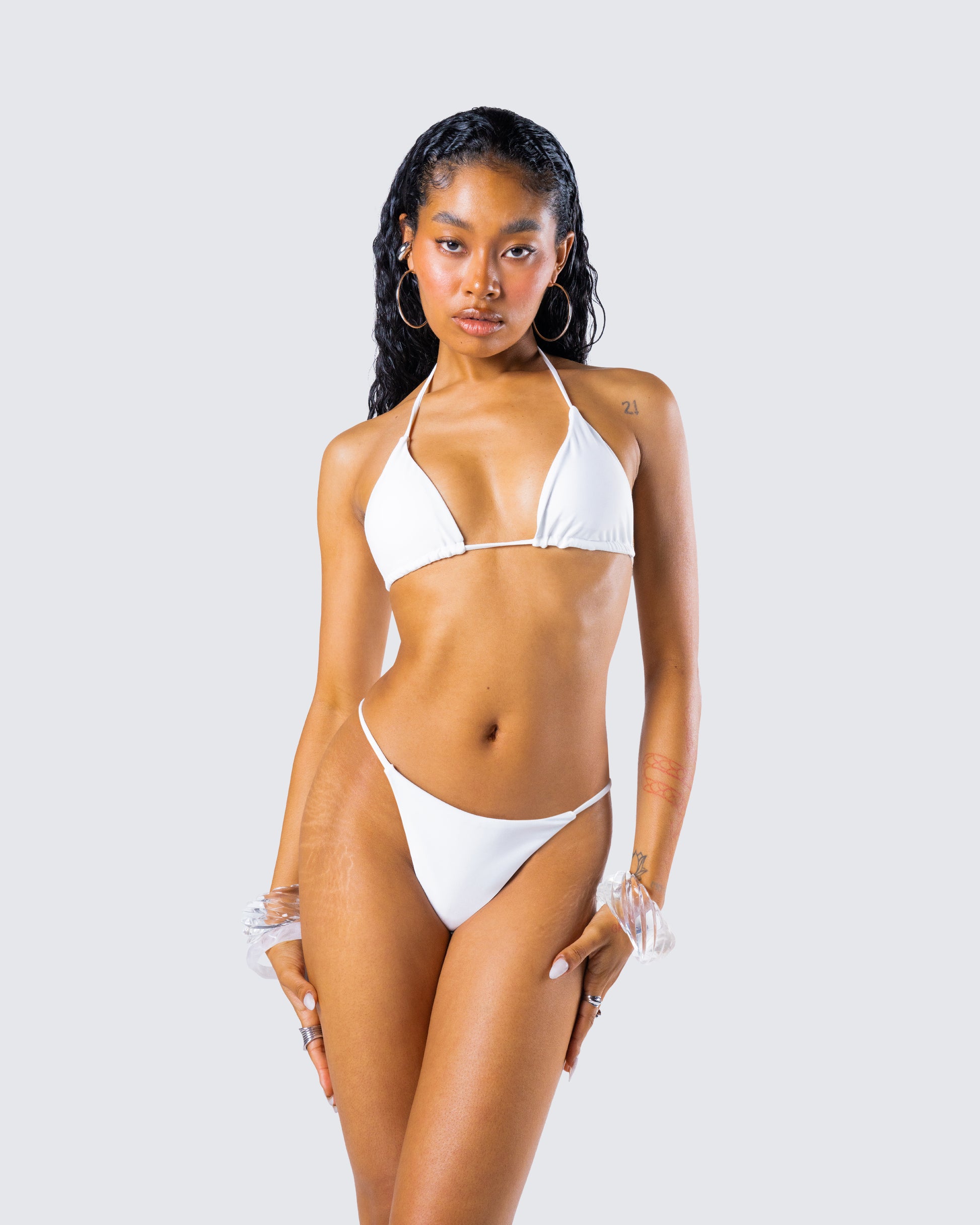 From soaking up the sun, to getting drinks at the beach club - this little white bikini top can do it all 💅 Made from jersey fabric complete with removable bust pad inserts and a tie back, this piece is a certified summer essential 🤍