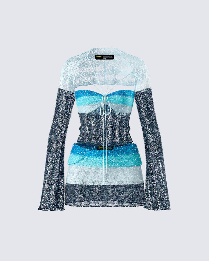 Regular price $54.00Regular priceUnit price / perSale price $54.00Vanessa Turquoise Sequin Knit Top