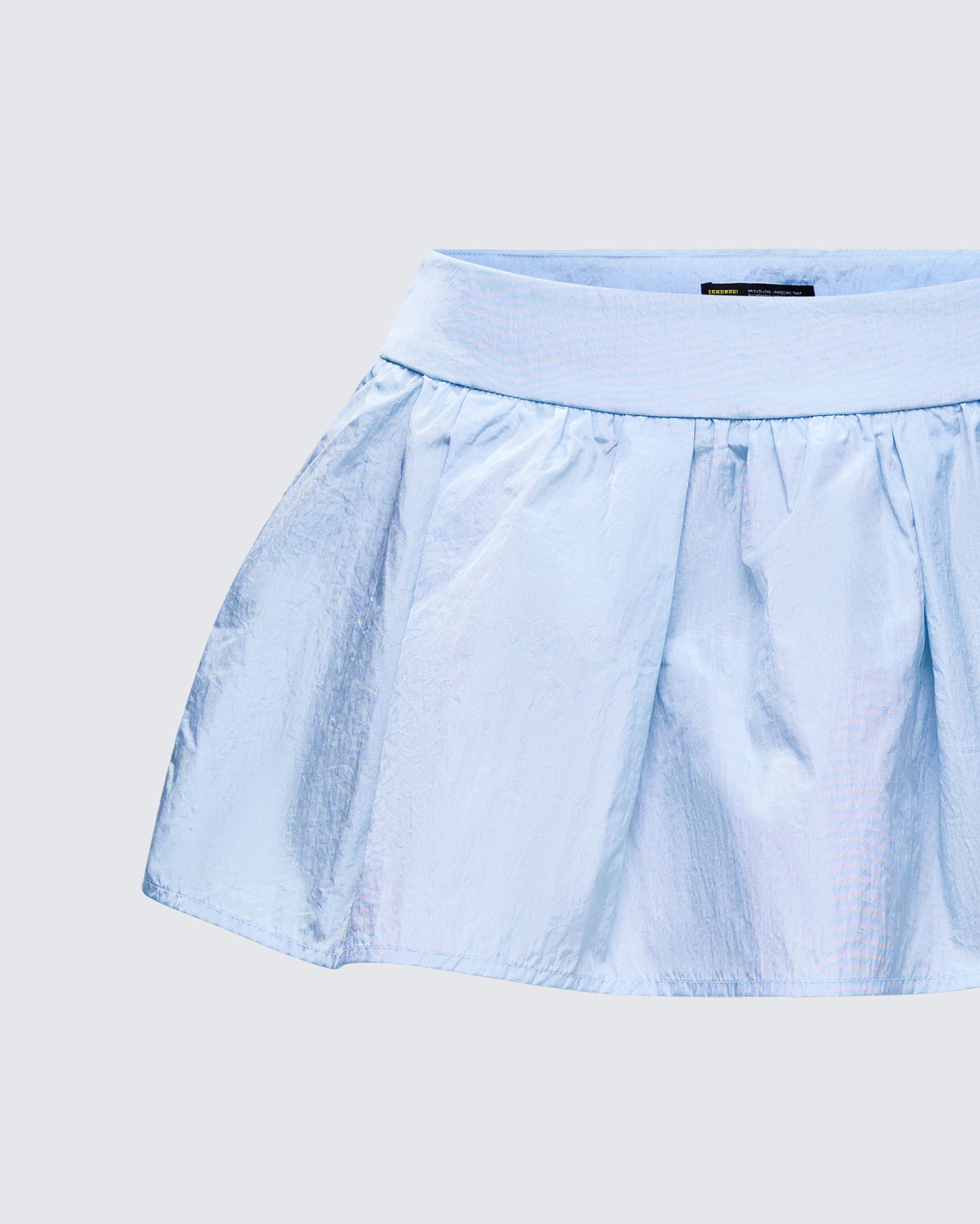 Pretty up top, playful down low π Complete with a 3D floral bra paired with a breezy blue mini and white platform heels - this three piece set is giving sugar-spun chaos in the best way π