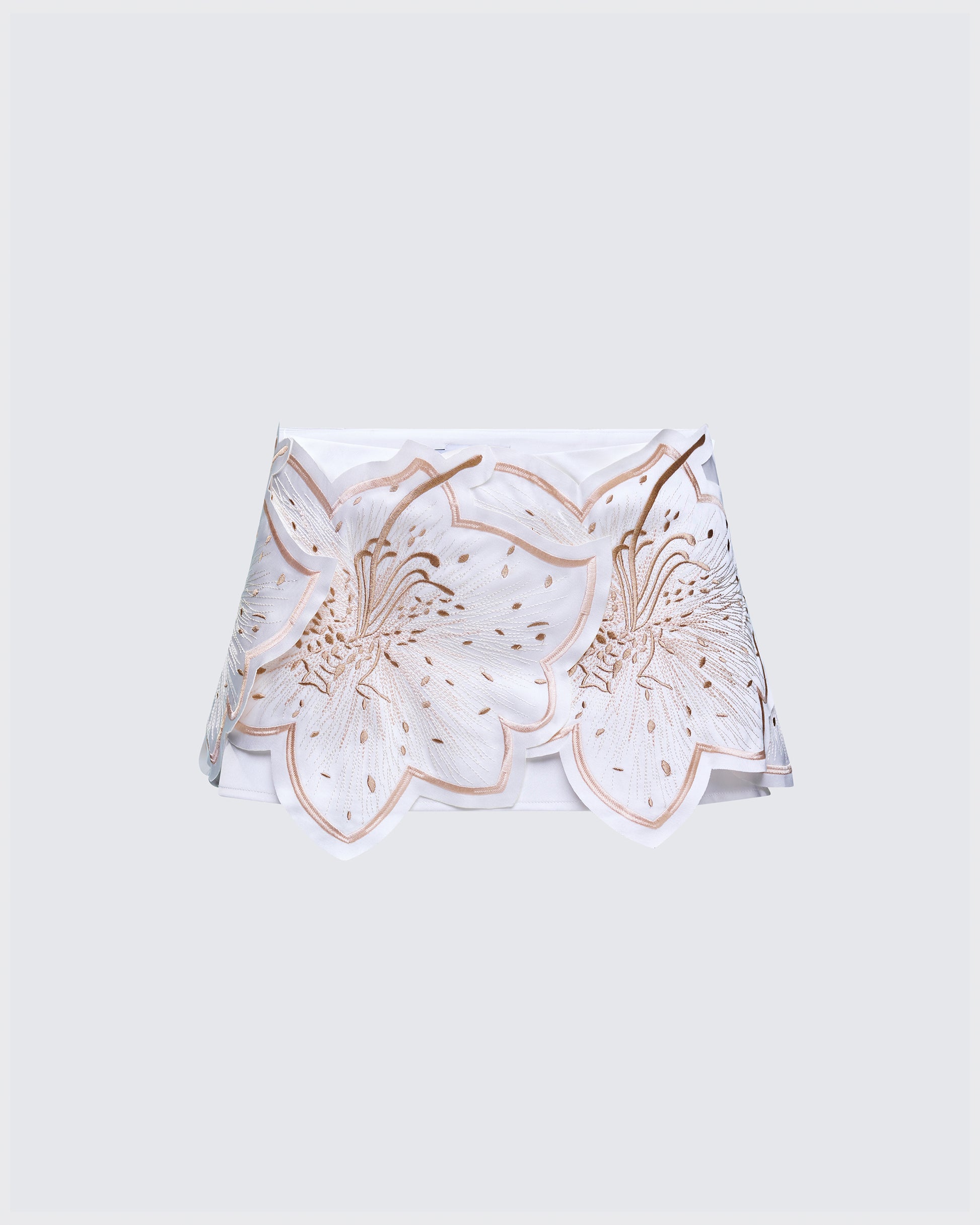 Who said florals can’t be flirty? 🌸 Featuring a premium satin finish, this appliqué mini skirt brings floral energy with a filthy little twist 😏