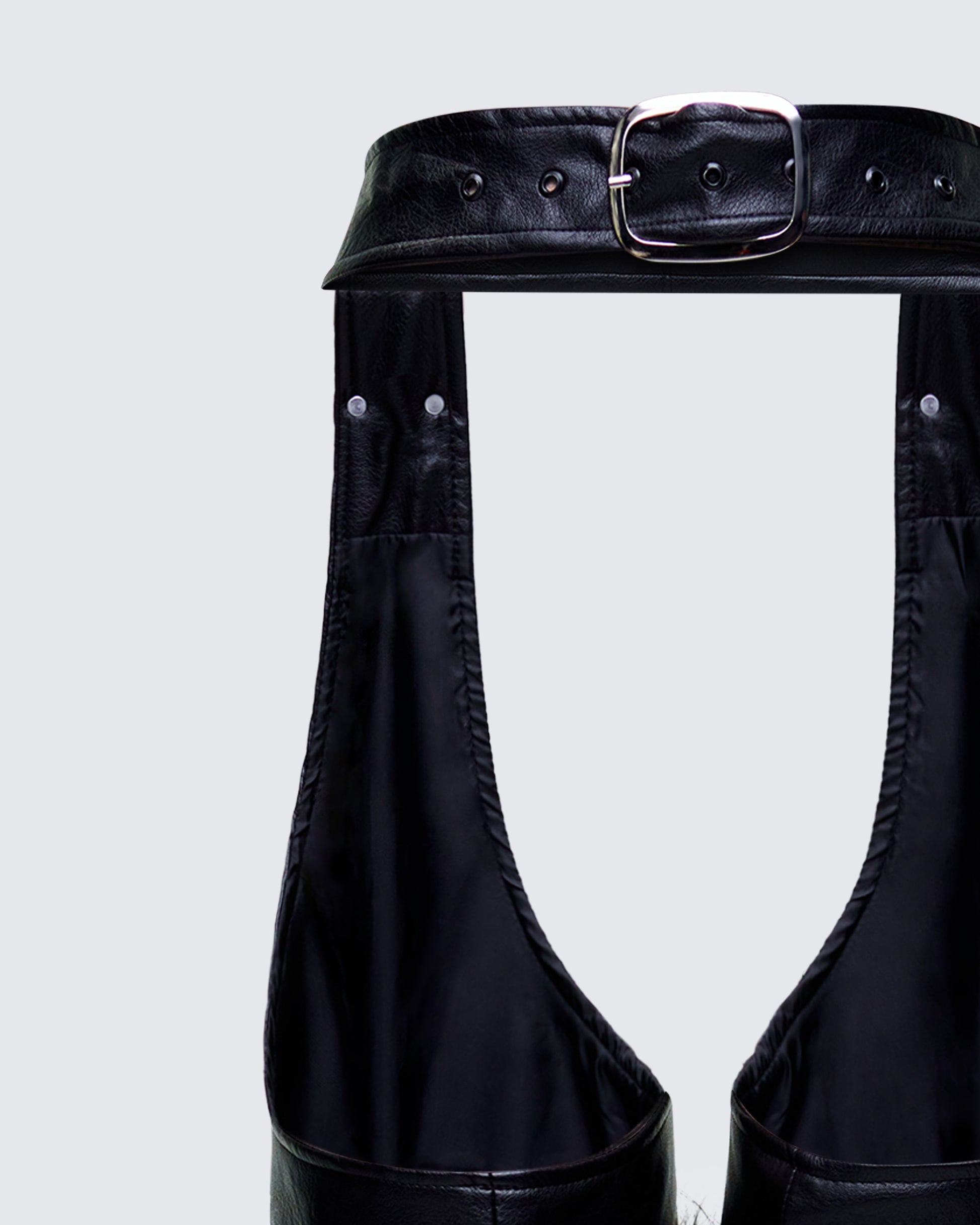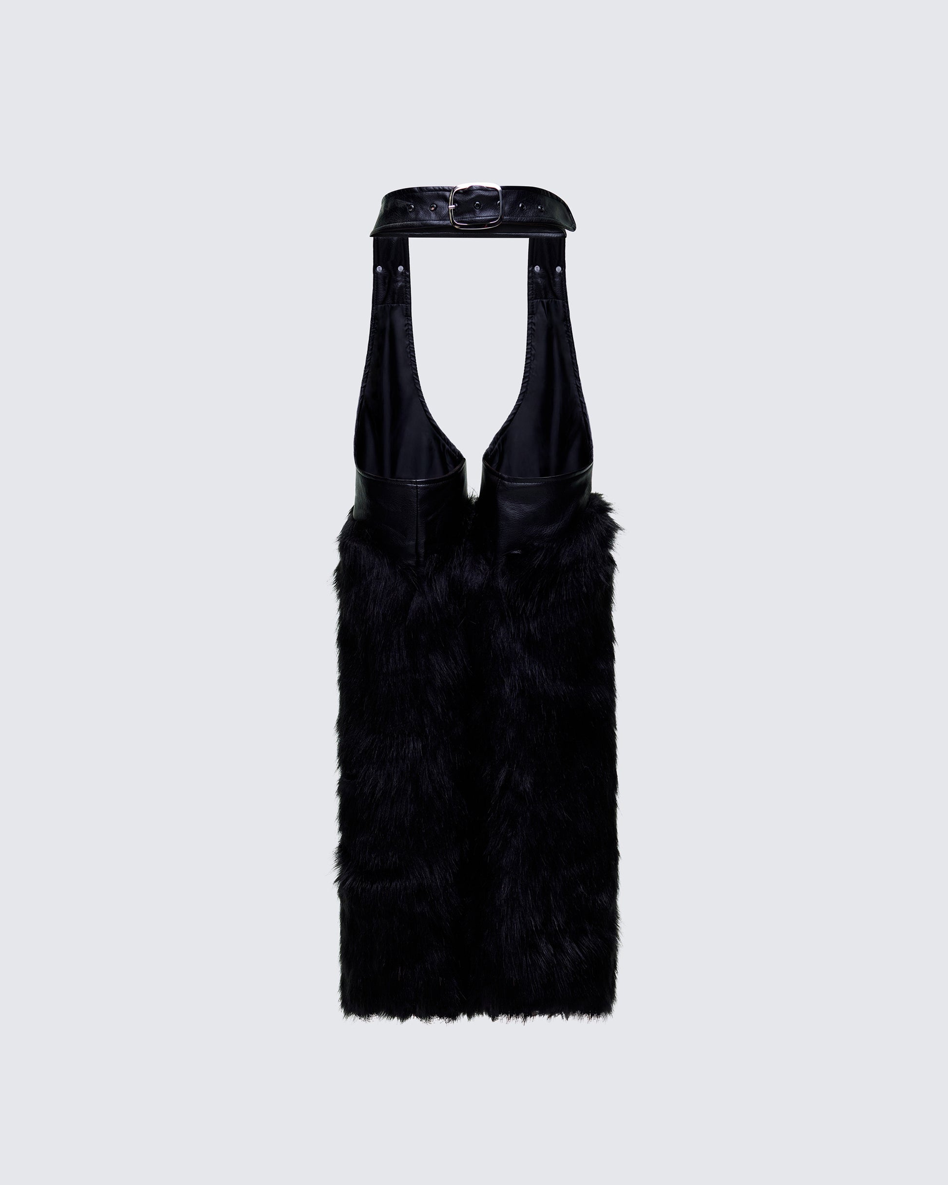 Save a horse, ride a cowgirl 😈 Show them what you’re working with in these black fur trim chaps made from vegan leather and complete with a straight leg, cut-outs, and a belt buckle 🖤