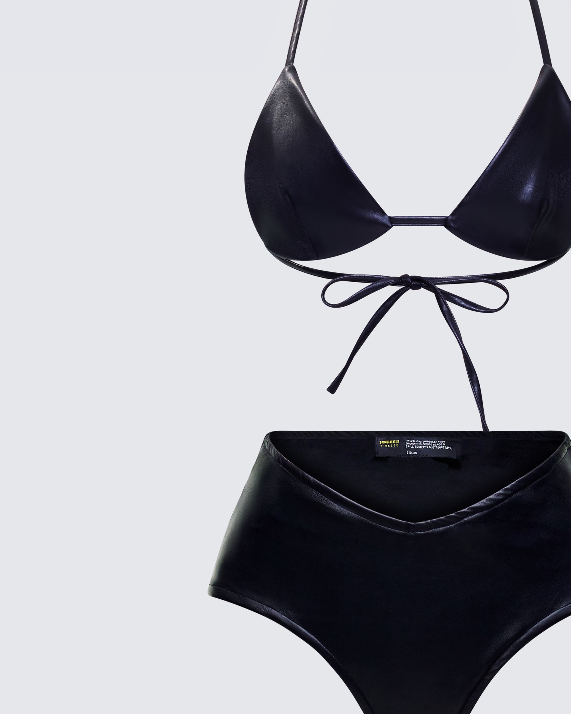 Unleash your inner rebel with this black vegan leather bikini π₯ From sun-soaked days to sizzling nights, this set is all about making a fierce statement and owning your confidence π€