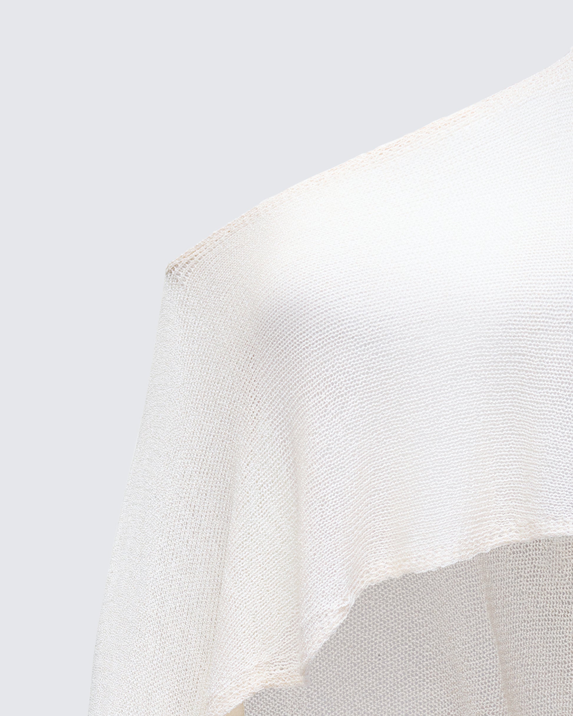 The perfect little piece to spice up any fit 🤩 With an off-shoulder design and pull over style, this ivory poncho made from fully fashioned knit fabric is a boho dream ☁️