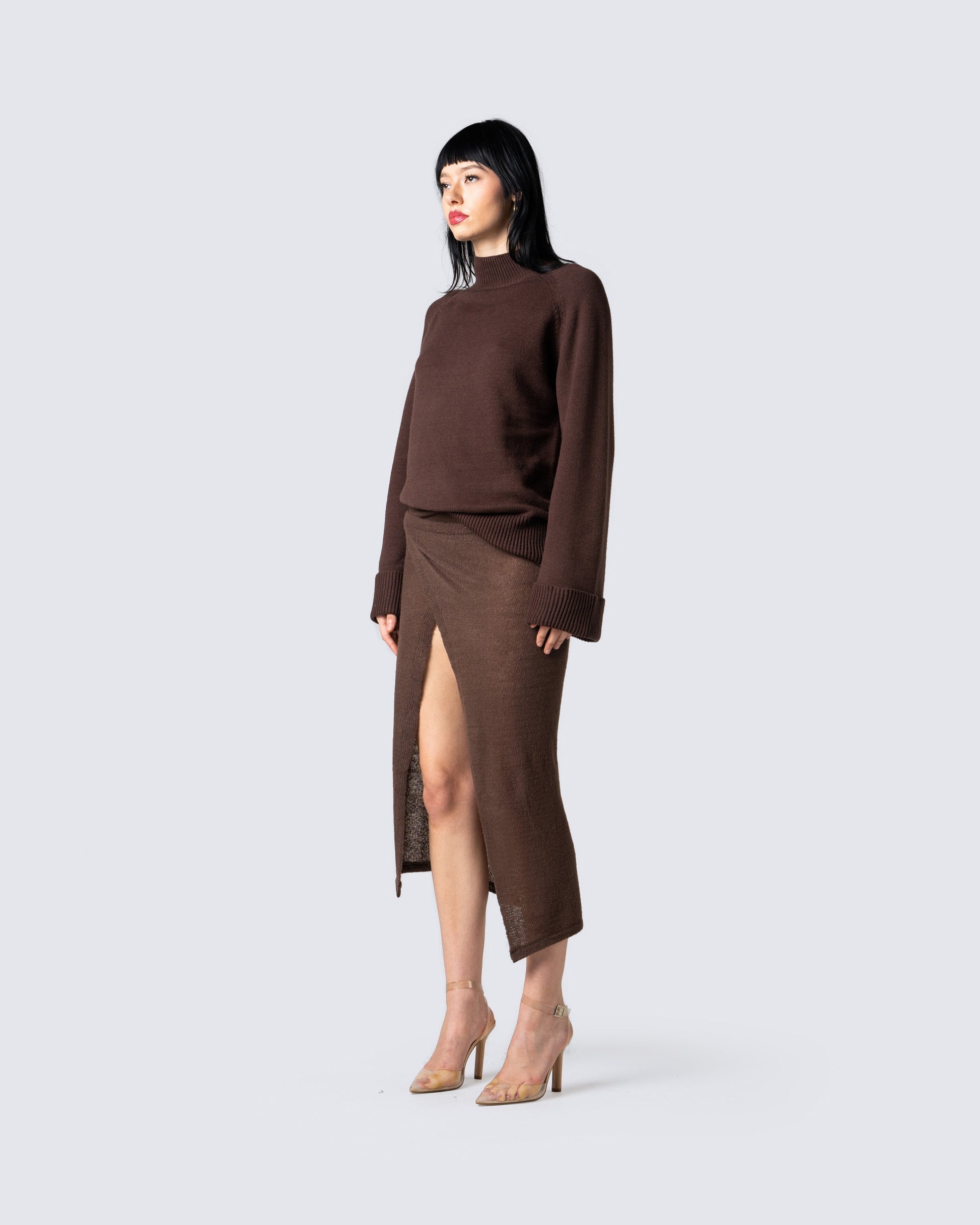 This brown sweater knit top and knit midi skirt screams unique, classy, and powerful 🤎 Give off a vibe everyone will be wanting more of 🥵
